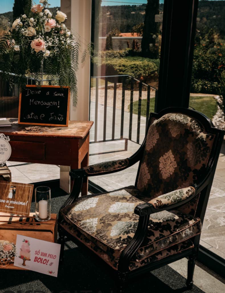 Dispõe de um amplo salão, que pode ser adaptado ao estilo de casamento que desejam. A sala pode estar disposta em modo banquete, buffet ou cocktail, conforme as vossas necessidades.